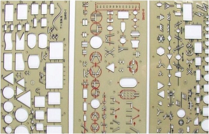 С ее помощью можно было легко и быстро нарисовать ровные геометрические фигуры для решения задач по геометрии, а также использовать разные линии для подчёркивания текста. Это был простейший, но очень эффективный инструмент для творчества и учебы. И при этом такие линейки были разными: цифры, скобки, электрические схемы.