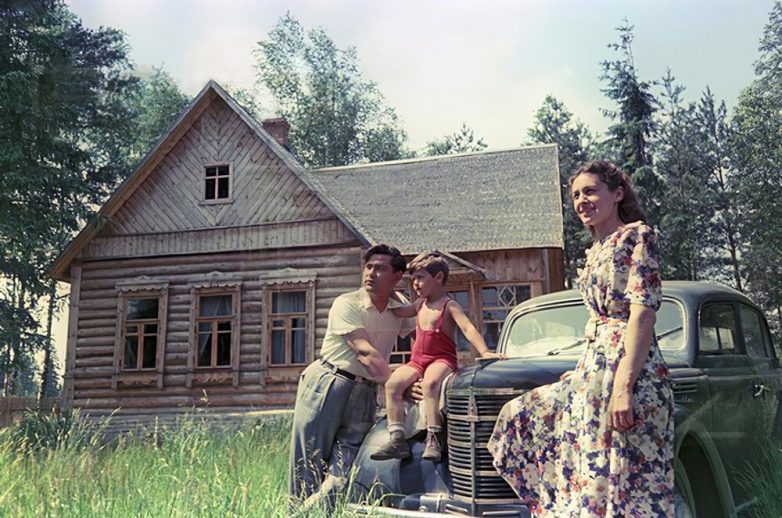 18. Знаменитый советский лётчик Алексей Петрович Маресьев с семьёй на даче в поселке Некрасовский.