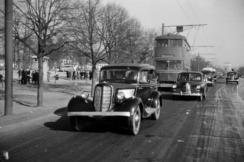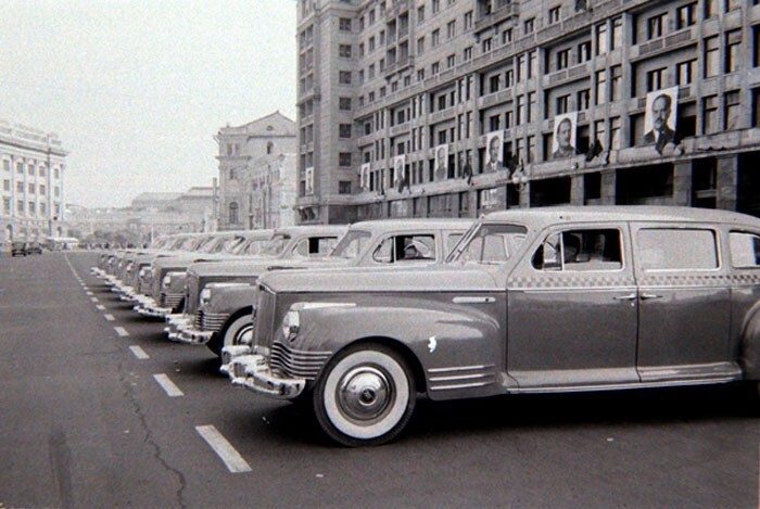 29. Стоянка такси-лимузинов ЗИС-110 у той же гостиницы «Москва», что мы видели на пару снимков выше.