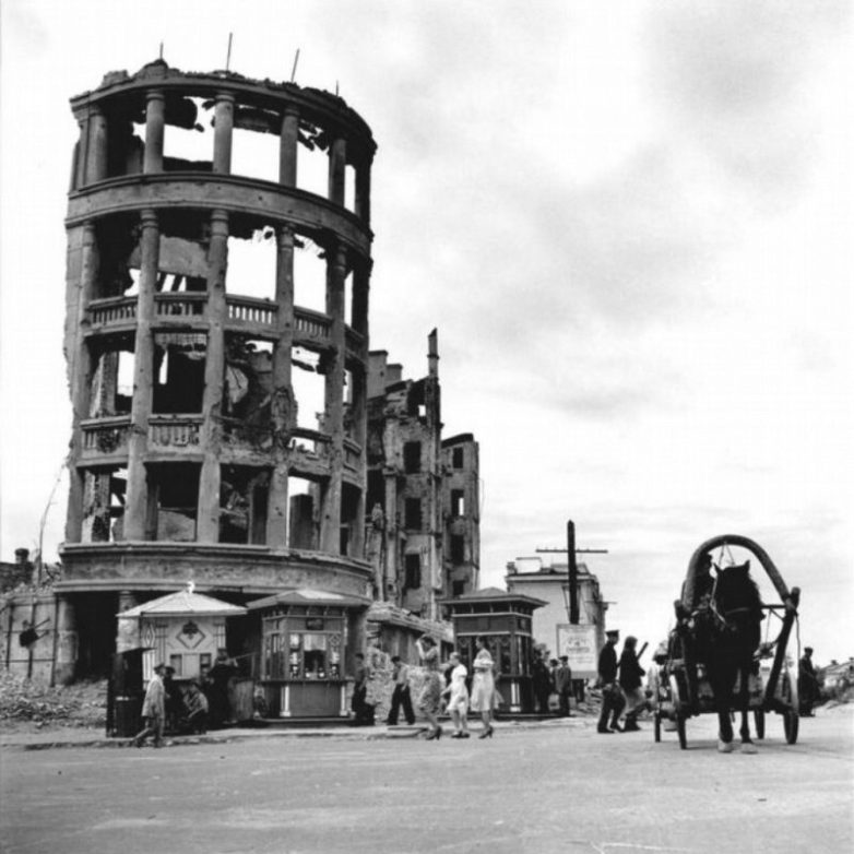 13. Ещё один снимок из Сталинграда. Идёт восстановление здания Центрального универмага.