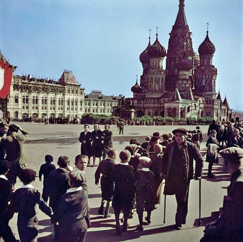 2. Сергиев Посад, Троице-Сергиева Лавра и лендлизовские Студебеккеры. Благодаря фотографу Роберту Капе у нас есть цветные снимки СССР тех лет.