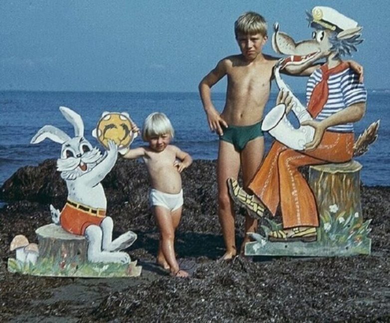 Подобные зайцы и прочие фигуры в то время массово использовались фотографами в Анапе. Ну конечно — фотошопа в те годы не существовало. И каждый пляжный фотограф «креативил» как мог. У меня есть фото — фанерный тигр с бутафорскими камышами, рядом стою я и мама моя, а с другой стороны от тигра — наши соседи, что у той же хозяйки другую комнату снимали. А ещё помню один фотограф сделал раковину типа рапаны, только большую — внутрь помещался ребёнок. Раковина лежала на песке, фоном для снимка было море.