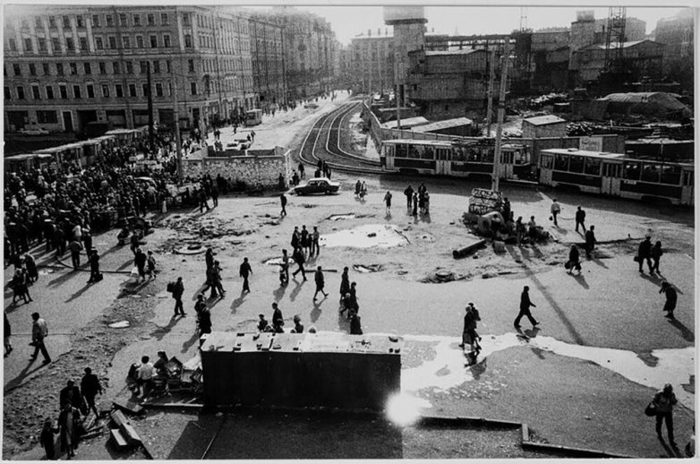 25. Движуха на площади Мира (ныне Сенная). Посреди площади идёт строительство станции метро „Садовая“, оно будет завершено в 1992 году.