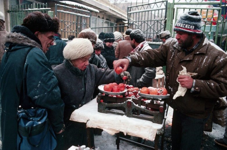 11. Торговля хурмой у ворот Черёмушкинского рынка.