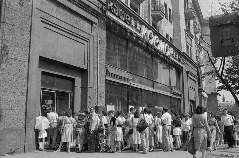 19. Огромная очередь в кафе «Космос» на улице Горького (современная Тверская).