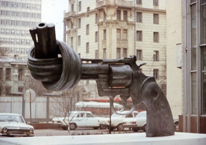 10. Вот такой необычный памятник под называнием «Нет насилию» можно было увидеть в Москве конца восьмидесятых на проспекте Мира.