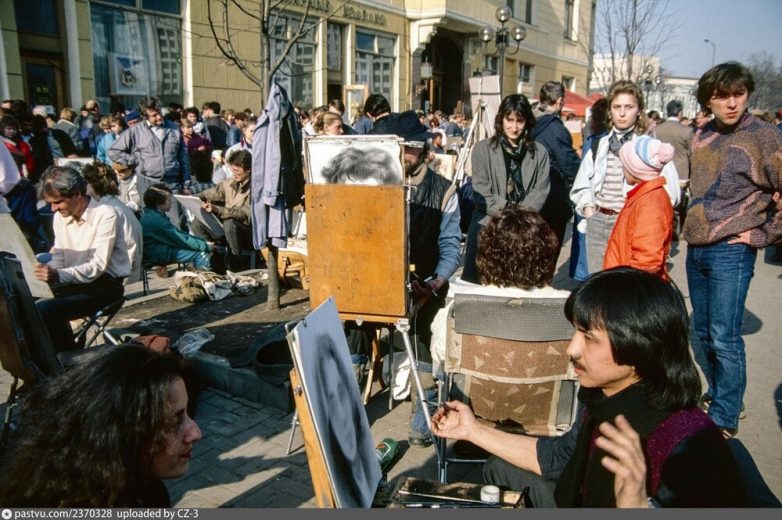 Начало конца великой страны.Довели Арбт, кафе Космос и Макдональдсы до цугундера… На Арбате в основном барыги пытались иностранцам мазню за баксы всучить
