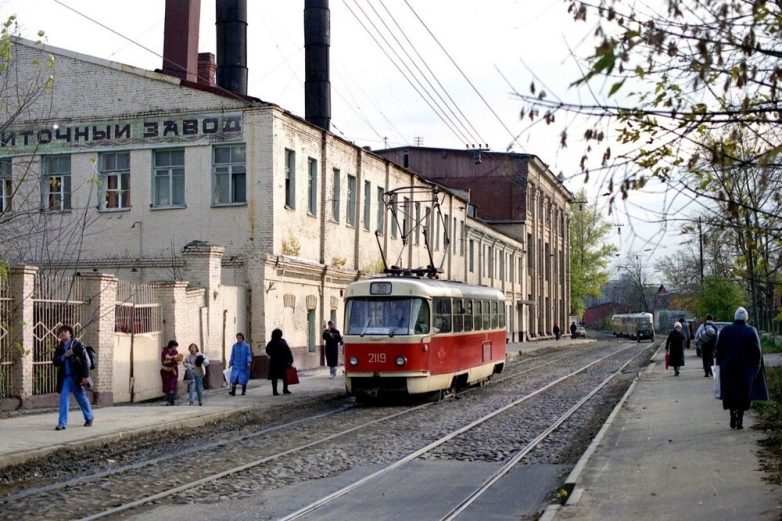 22. Трамвай в Холодильном переулке у Плиточного завода, неподалёку от станции метро «Тульская».
