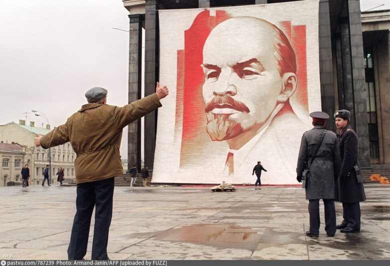 6. На здание государственной библиотеки СССР имени Ленина вешают, огромный портрет самого Ильича.
