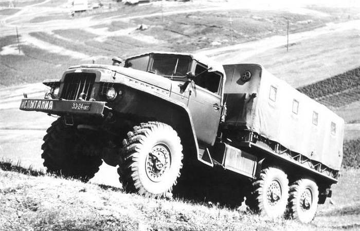 И здесь было бы совершенно не лишним напомнить о том, как Урал-375 вообще появился. История нашей «боевой колесницы» началась ещё в 1956 году в стенах Научного автомобильного института (НАМИ), когда на свет появился прототип 3-осного полноприводного грузовика НАМИ-020. Что интересно, разработали грузовик в кратчайшие сроки: между первым прикосновением карандаша к чертёжной доске и появлением машины в металле прошло всего три года. В среднем подобная техника разрабатывалась в СССР (да и не только) в 2-3 раза дольше. Конечно, НАМИ-020, ставший прямым предком Урал-375, вовсе не был разработкой с нуля. Многие агрегаты и узлы были заимствованы от других разработок. Кабина от ГАЗ, мотор от ЗиЛ, раздатка и коробка от двух автомобилей МАЗ. Из принципиально инновационных разработок можно в первую очередь выделить новый проходной средний мост.