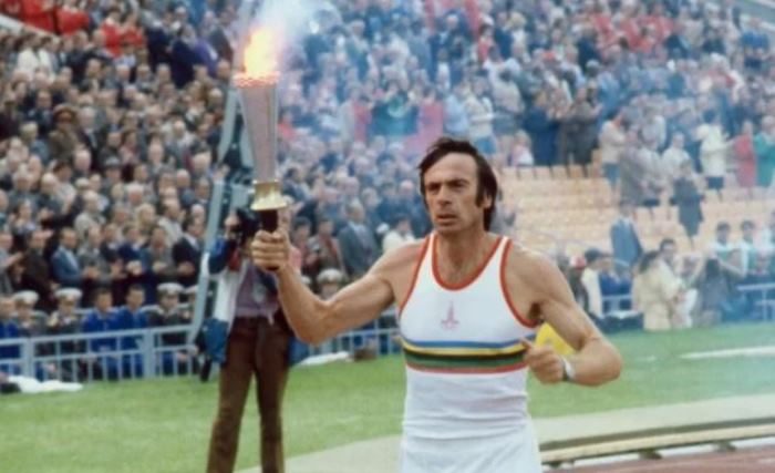 Виктор Санеев на Олимпиаде в Москве с Олимпийским огнем