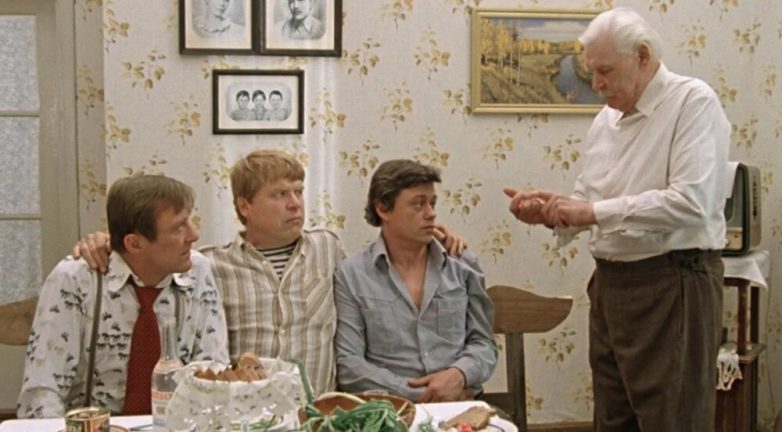 7. Геннадий Гарбук, Михаил Кокшенов, Николай Караченцов и Всеволод Санаев в фильме «Белые росы».