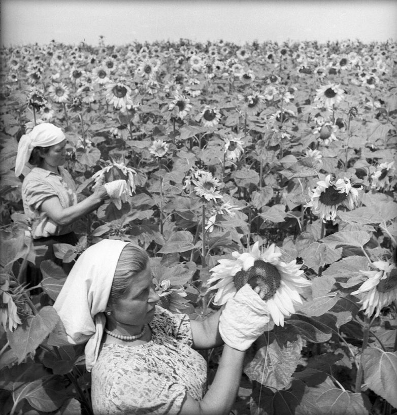 16. Подсолнухи. 1952 год. Автор: Евгений Халдей. Полтавская область, село Яреськи.