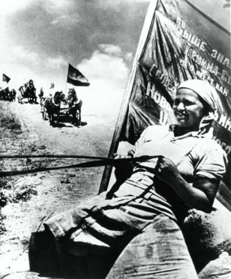 9. Девушка со снопом. 1940 год. Автор: Евгений Халдей. Белорусская ССР, Гродно.