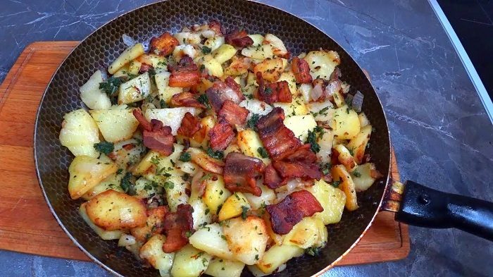 Блюда из картофеля с удовольствием ели и члены семьи, и гости. Для того, чтобы сделать вкусное пюре, нужно было лишь добавить немного соли, сливочного масла и зелени. А вот жареную картошку предпочитали готовить на сале. Тогда она получалась особенно вкусная и сытная. С таким гарниром идеально сочетались маринованные овощи – огурцы, помидоры, капуста. Вот так, при минимуме затрат, у хозяек получалось накрыть отличный стол.