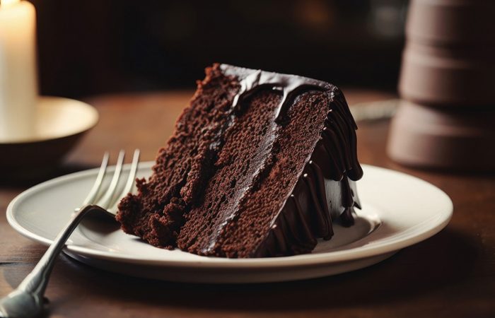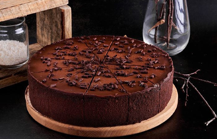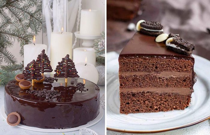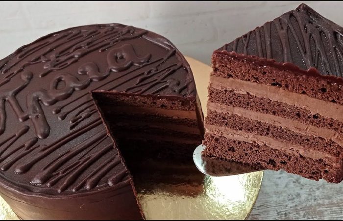 В торте присутствует три шоколадные части — коржи, крем и глазурь.