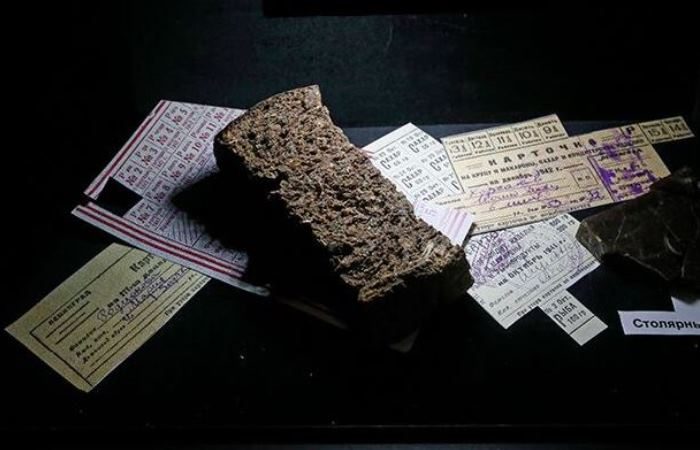 К началу зимы норма хлеба составляла уже 250 грамм в день для рабочих, и 125 грамм для всех остальных. В самые тяжелые дни это была единственная еда жителей блокадного Ленинграда, остальные продукты полностью исчезли из выдачи. При этом хлеб был сырой, с большим содержанием различных примесей.