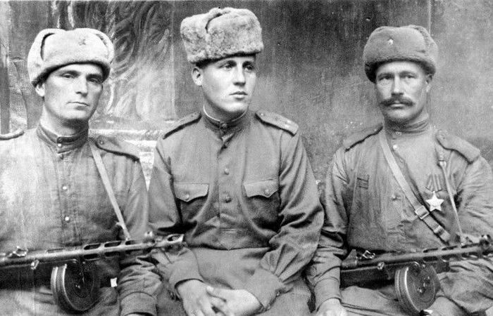 Мой дед на фото — сначала два кубика в петлицах и на голове пилотка. На другом фото он просто с бритой головой, но в петлицах уже три кубика. Так и погиб под Киевом в начале осени 1941г.