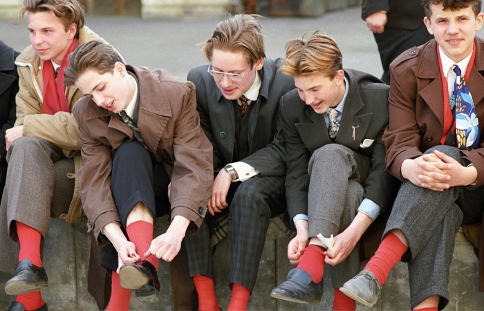 В начале 60-х в тренде стали мужские брюки-дудочки. Но в магазинах одежды их не было. Однако женщины смекнули, где можно достать брюки для своих мужей. Они их шили из старых брюк. Благо ширина изделия позволяла это сделать — 33 сантиметра уменьшались до 22. Про владельцев узких брюк говорили, что надевают они их после того, как намылят ноги! А самые смелые модники носили их с носками красного цвета.