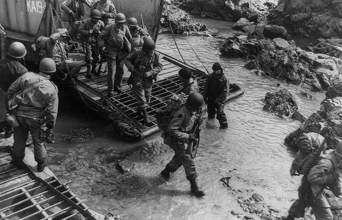 Закрывать Алеутский вопрос отправили 29 тысяч американских и ещё 3 тысячи канадских парней. Битва за Атту вышла крайне кровавой. По некоторыми оценкам американцы оставили там до 600 человек одними только убитыми. И это притом, что гарнизон Атты был почти в 2 раза меньше Кыски. При этом японцы сдаваться категорически отказались, из-за чего убиты были практически все. Далее предстояло освободить второй остров. После продолжительной артиллерийской подготовки первыми на песок (точнее камни) прыгнули канадцы. Однако, отсутствие «тёплого приёма» ветеранов Атты не смутило. Союзники резонно полагали, что японцы засели в глубине острова. Но японцы проявили невиданное коварство… Они просто не явились на войну. То есть буквально. Оказалось, что к моменту высадки на Кыску на проклятом острове нет ни одного японца.