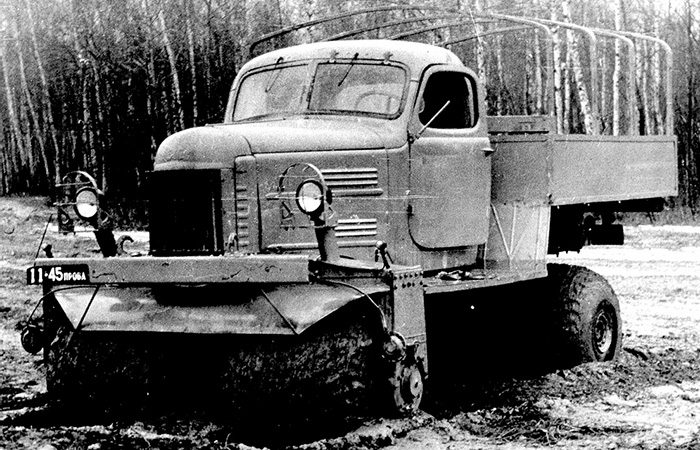 Вот только усложнять уже существующий грузовой транспорт было некуда. Имевшаяся на тот момент трансмиссия практически достигла своего предела, а потому конструкторы должны были изобрести нечто совершенно новое, чтобы без особого труда преодолеть раскисшую грязь при больших перегрузках. Именно поэтому специалисты ЗИЛа, которые внимательно следили за мировыми разработками в области грузового транспорта, задумали построить машину на основе нового гибридного шасси.