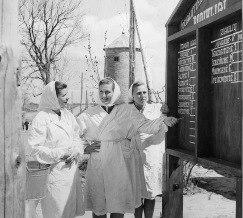24. Передовые доярки знакомятся с показателями работы животноводов и полеводов. Литовская ССР