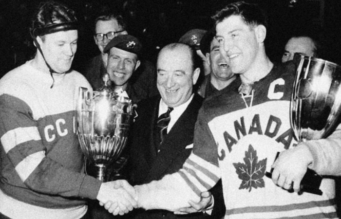 В марте 1954-го сборная СССР впервые прибыла в Стокгольм для участия в чемпионате мира по хоккею с шайбой. Турнир стал дебютным абсолютно для всей советской команды, ведь игроки занимались хоккеем всего несколько лет, начав в послевоенное время. Это кажется немыслимым, но несмотря на отсутствие должного опыта, хоккеисты вышли в финал и на голову разбили канадцев. И это на фоне единогласного мнения спортивных экспертов о главном фаворите чемпионата мира 1954 в лице сборной Канады. Последняя в ходе предыдущих первенств выиграла 15 из 20 состязаний. Поверив в свое абсолютное превосходство, сборная Канады даже не задействовала игроков из НХЛ, прислав вместо первых игроков любителей из East York Lyndhursts. Советская команда ранее специализировалась на хоккее с мячом.