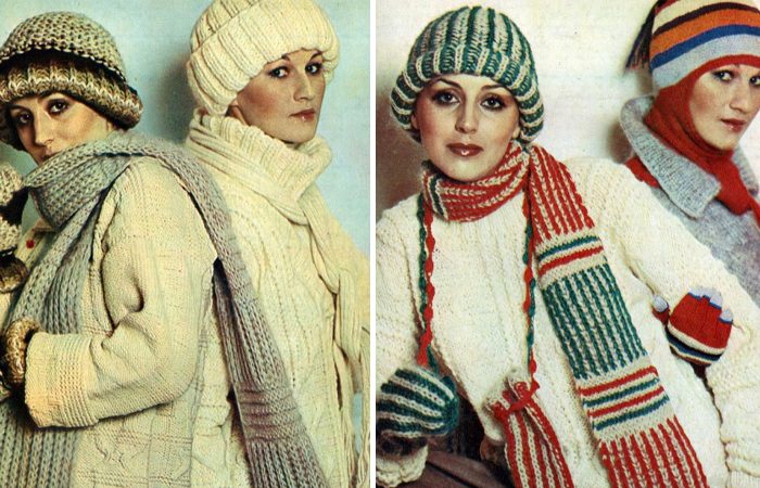 В СССР был тренд на вязанные вещи, а все потому что достать натуральную качественную пряжу было намного проще, чем купить красивый кусок ткани. Многие советские хозяйки освоили технику вязания крючком и на спицах, а затем создавали модные шедевры, не выходя из дома. Женщины вязали не только носки, шапки и шарфы, они могли изготовить вручную платья, свитера и кардиганы, а в этом им помогали снова журналы, но уже для вязания. Привычка была «заразной», ведь каждая модница знала, что вязание успокаивает нервную систему.