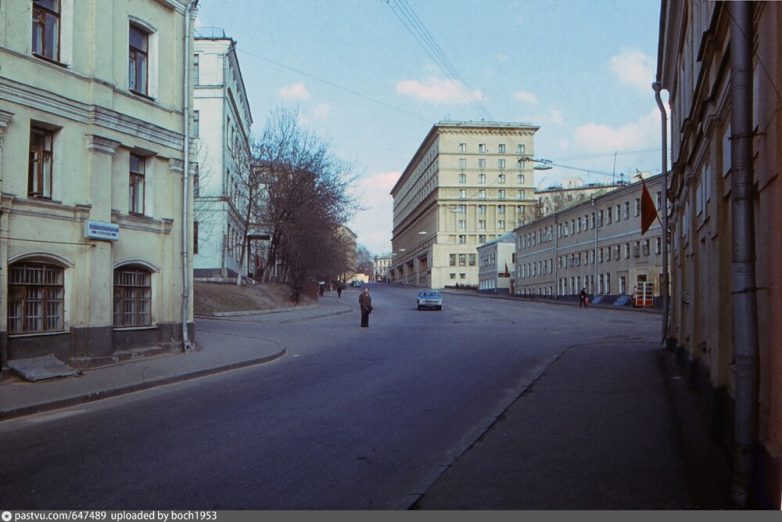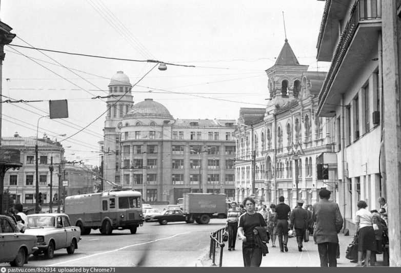 8. Теперь мы на улице Богдана Хмельницкого, ныне Маросейке. Вид на площадь Ильинские ворота, справа виден фасад Политехнического музея. Фото 1983 года