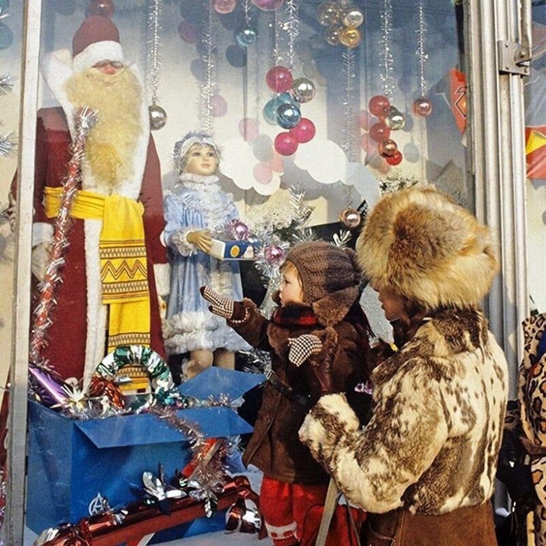 20. Завершим прогулку у витрины магазина «Детский Мир», что на площади Дзержинского, ныне Лубянской. Фото 1987 года,