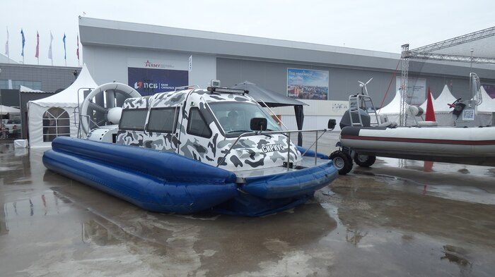 Судно на воздушной подушке может двигаться по воде и мелководью и даже выходить на сушу.