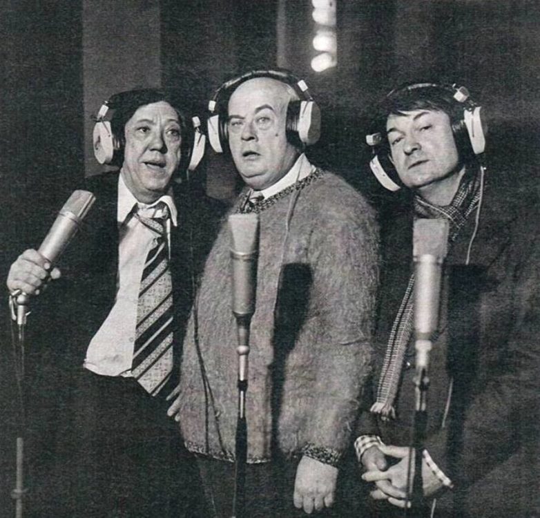 6. Юрий Никулин, Евгений Моргунов и Георгий Вицин на озвучке Балбеса, Бывалого и Труса для аудиосказки «Происшествие в стране Мульти-Пульти», 1981 год.