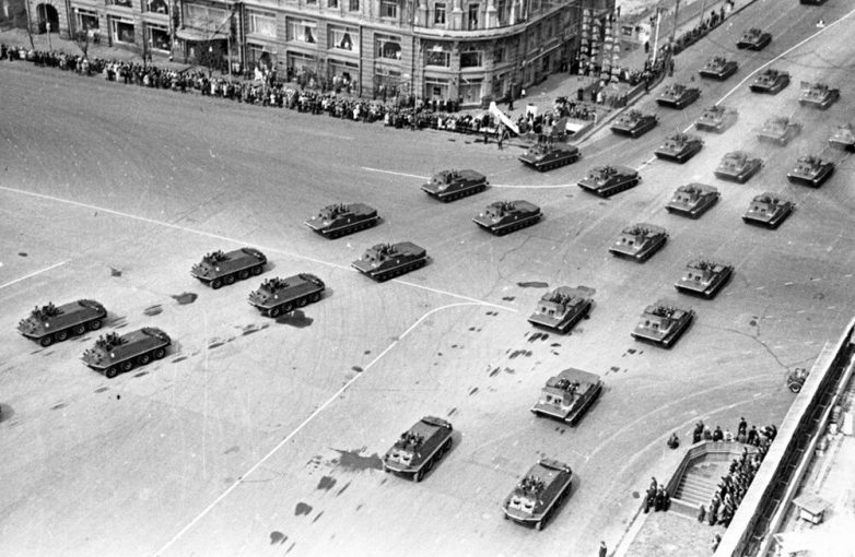 27. Проезд военной техники по Москве после парада. 1966–1967 годы. Автор: Владимир Фараджев.