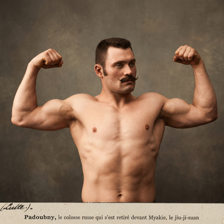 Обратите внимание на телосложение Поддубного. Гора мышц — это да, понятно. Но никаких прорисованных кубиков пресса. И четкого рельефа.