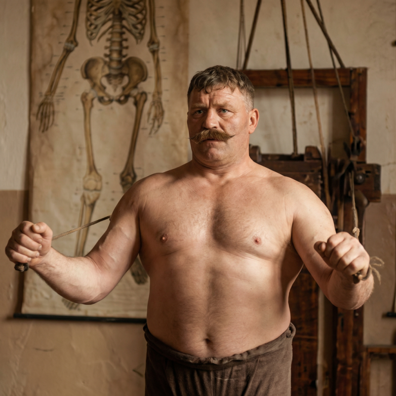 Хочу сделать здесь небольшое отступление, чтобы разобрать феномен его силы. Потому что это XIX век. Никакой медицины, никаких анаболиков. А сила реально выдающаяся — откуда? Разумеется, этот вопрос изучали врачи — больше всех доктор А.А. Шварцер.