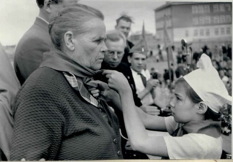 Татьяна Морозова на встрече с пионерами в шестидесятых годах.