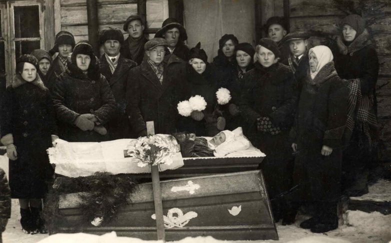 Точно сказать, когда и почему появилась эта традиция, невозможно – слишком много версий и слишком мало прямых свидетельств. Одни исследователи связывают её с европейской практикой посмертной фотографии ХІХ века, когда снимок стоил дорого, а смерть приходила внезапно. В таких случаях фотографирование покойного становилось единственным шансом сохранить его образ. Умерших усаживали, подпирали, придавая им «живой» вид – по современным меркам это выглядит жутко, но тогда подобная практика воспринималась как норма и акт памяти. Другая версия уходит корнями в годы Гражданской войны. Фотографии с похорон красноармейцев и героев революции активно публиковали в газетах, формируя особый визуальный язык скорби и подвига. Со временем эта практика ушла из публичного пространства перешла в частную жизнь и закрепилась как негласная традиция.