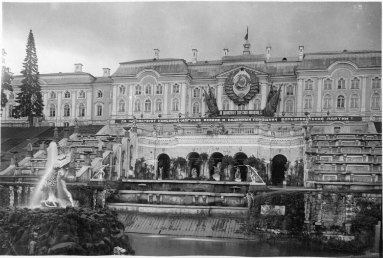 11. А вот так оформили северный фасад Большого Петергофского дворца к всё тому же 20-летнему юбилею Октября.