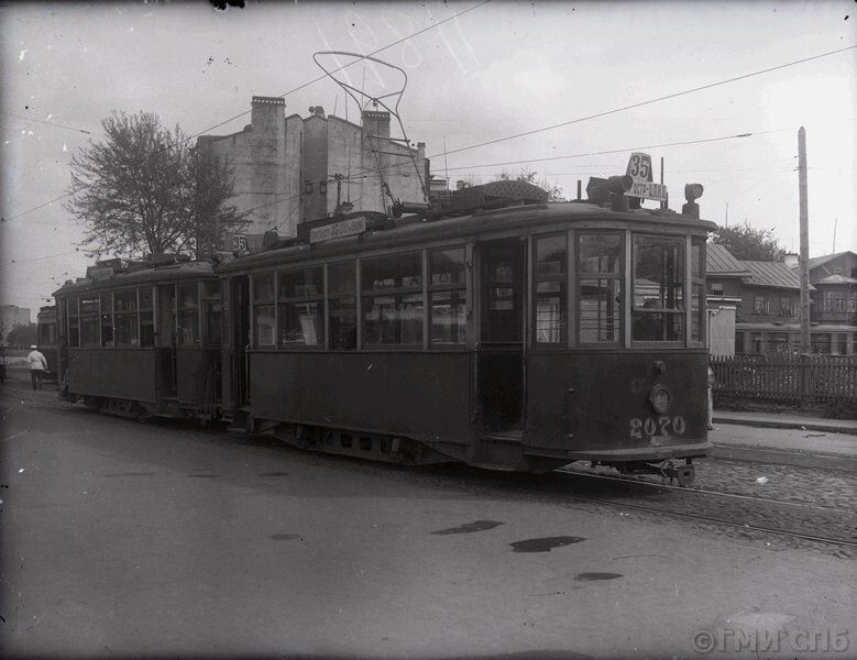 7. Двухвагонный трамвайный состав маршрута № 35 «Турухтанные острова — ЦПКиО им. Кирова», который сфотографировали на современной набережной Мартынова.