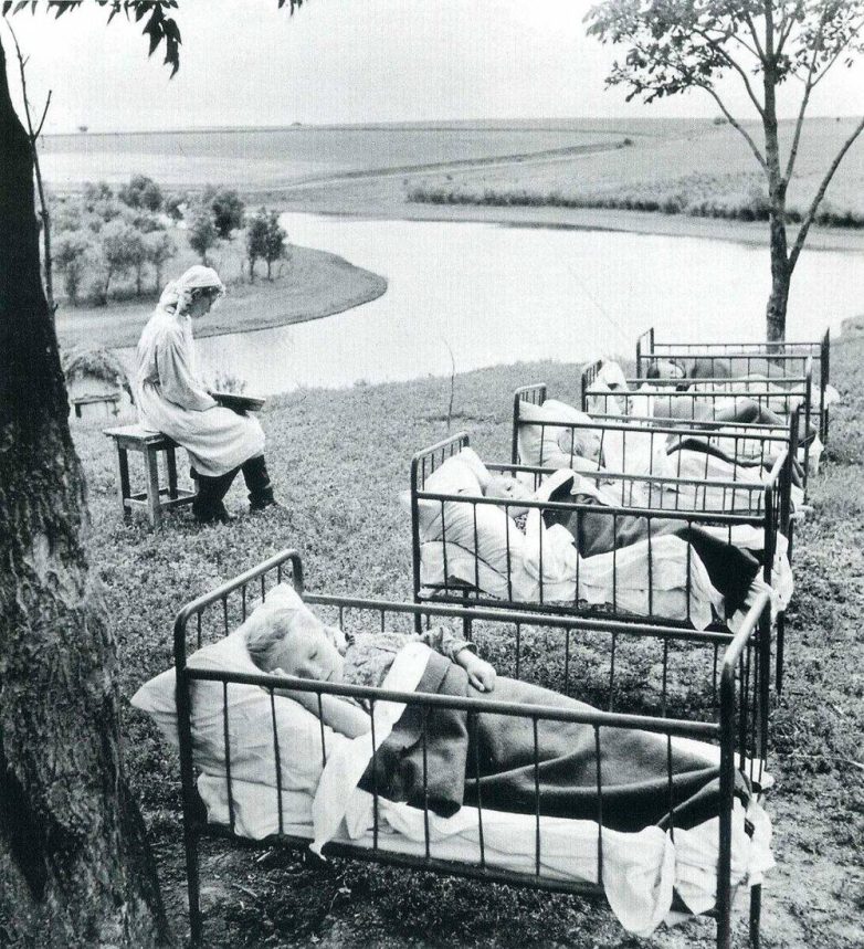 Интересно, что врачи и воспитатели на тот момент считали: если ребёнок засыпает на улице, значит, его организм адаптировался к условиям, а крепкий сон и свежий воздух способствуют закаливанию. Поэтому дети на свежем воздухе быстро засыпали, и в этот момент воспитатели могли немного передохнуть, пока дети набирались сил.