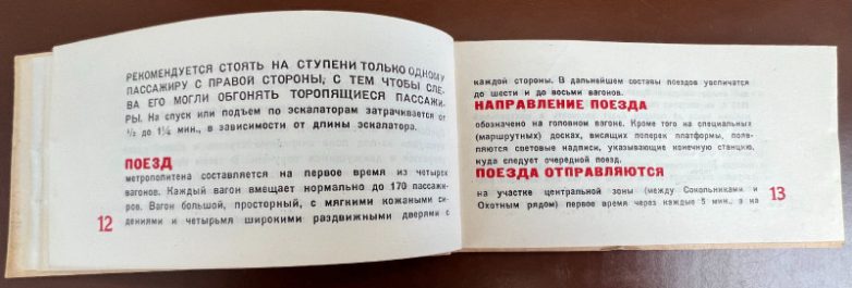 Далее шла полезная для пассажиров информация. Людям рассказывали, как найти наземный вестибюль метро с помощью буквы «М». Отдельный блок уделили эскалаторам. Конечно, для москвичей, это инженерное сооружение не являлось частью повседневной жизни. Интересно, что уже тогда людям рекомендовали стоять справа, чтобы те, кто спешили, могли спускаться или подниматься по левой стороне эскалатора. Затем горожане попадали на платформу. Сориентироваться им помогали указатели как на станциях, так и на головных вагонах поездов. Кстати, стоянка состава тогда длилась 30 секунд.