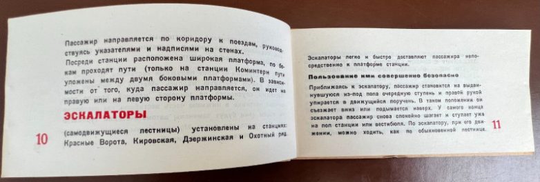 Если уж вы прошли фейс-котроль на входе, то внутри вас ждало ещё несколько запретов. Например, на станциях нельзя было петь, играть, шуметь, плевать, курить, мусорить, портить отделку или салоны вагонов. Нарушителей ждал штраф. Правда его размеры в памятке не указали. Ну и в принципе от людей просили вежливого отношения друг к другу в новом виде транспорта. Про метрополитен в путеводителе говорилось так: «Он несёт нам удобства и культуру, но требует также культурного отношения к себе».