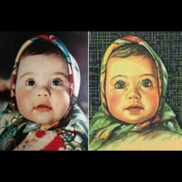 В 1960 году фотокорреспондент Александр Геринас сфотографировал свою восьмимесячную дочку Лену. Снимок кареглазой девочки в пестром платочке сначала появился в журнале «Советское фото», а потом украсил первый номер журнала «Здоровье» за 1962 год.