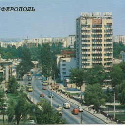 Комплект открыток «Симферополь». 16 сюжетов. Издательство «Плакат». Москва, 1988 г. На обложке: Симферополь. Привокзальная площадь…