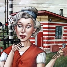 Донецкая художница Анжела Джерих не просто рисует ностальгические «советские» картины. Ей, скорее, интересна стилистика советского быта: толстеющие мечтательные дамы, неуклюжие кавалеры, пионеры и бабушки у подъездов.